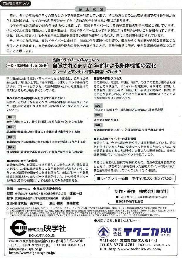 そこでこの作品では、高齢ドライバーに向けて、加齢に伴う運転への影響や、慣れからくる油断が危険な事故につながることを訴えます。自分自身の体調や能力の変化を自覚することが、事故を未然に防ぎ、安全な運転の継続につながることを示します。
